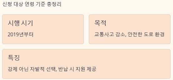 최근 고령 운전자 교통사고가 사회적 이슈가 되면서 운전면허 자진 반납 제도에 대한 관심이 높아지고 있습니다. 특히 가장 많이 궁금해하는 부분이 바로 신청 대상과 연령 기준입니다. 헷갈리기 쉬운 기준을 중심으로 핵심 내용을 정리했습니다.