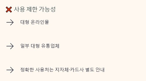 지원금은 지역화폐와 동일한 사용 구조를 따릅니다. 동네 마트, 식당, 카페, 편의점 등 일상 소비 중심 업종에서 사용 가능성이 높습니다. 반면 대형 온라인몰이나 일부 대형 유통업체 등은 사용이 제한될 가능성이 있습니다. 정확한 사용처는 지자체와 카드사에서 별도로 안내될 예정입니다.