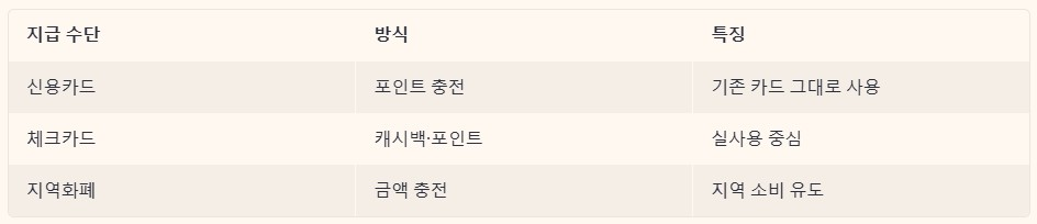이번 지원금은 통장 입금 방식이 아닙니다. 신용카드나 체크카드, 지역화폐 등에 포인트 형태로 지급되는 구조입니다. 이 방식은 지원금이 단순히 쌓이는 것이 아니라 실제 생활비 소비로 이어지도록 설계된 것이 핵심입니다. 결과적으로 지역 경제 흐름까지 함께 고려된 정책입니다.