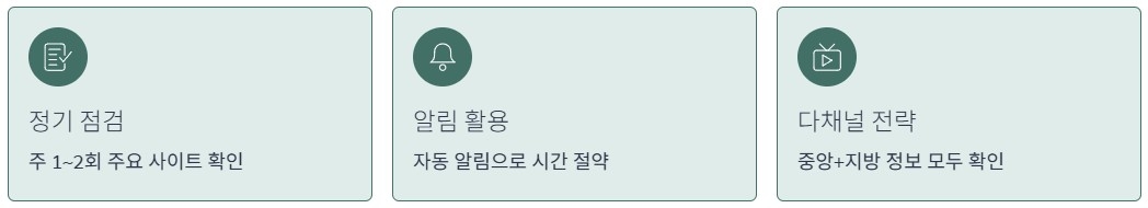 이처럼 여러 채널을 병행하면 모집 일정 누락 가능성을 크게 줄일 수 있습니다.
