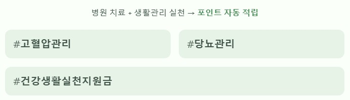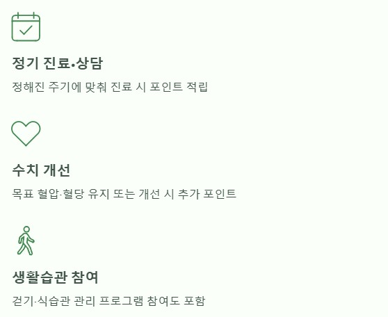 이 제도는 이미 만성질환 진단을 받은 사람을 대상으로 합니다. 고혈압이나 당뇨 환자가 꾸준히 관리하면 포인트로 보상이 이루어지는 방식입니다. 즉, 치료만 하는 것이 아니라 관리까지 포함된 구조라는 점이 핵심입니다.