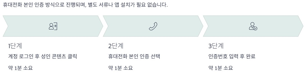 넷플릭스 성인인증은 본인 확인을 위한 휴대전화 인증 방식으로 진행됩니다. 별도의 서류 제출이나 앱 설치는 필요하지 않습니다.