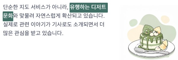 단순한 지도 서비스가 아니라, 유행하는 디저트 문화와 맞물려 자연스럽게 확산되고 있습니다. 실제로 관련 이야기가 기사로도 소개되면서 더 많은 관심을 받고 있습니다.