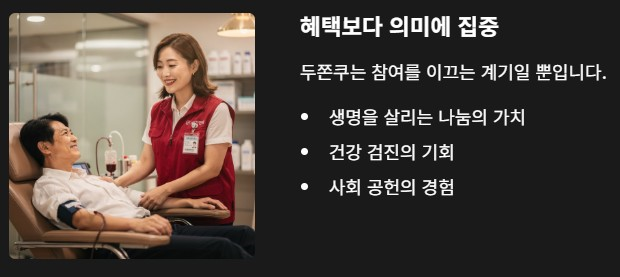 후기를 보면 공통점이 있습니다. 대학가, 번화가, 대형 상권 인근 헌혈의 집에서 이벤트가 자주 언급됩니다. 방문자가 많아 홍보 효과가 크기 때문입니다. 하지만 이 역시 고정 규칙은 아닙니다.