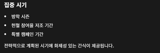 방학 시즌이나 헌혈 참여율이 낮아지는 시기에 이벤트가 늘어나는 편입니다. 이때 간식 구성에 두쫀쿠 같은 화제성 있는 디저트가 포함되는 경우가 있습니다. 평소보다 혜택이 강화되는 시기라 관심을 가져볼 만합니다.