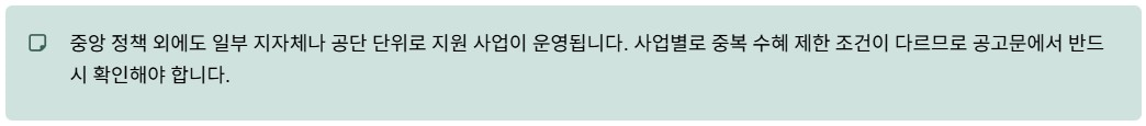 | 지원 유형 | 운영 주체 | 중복 여부 |