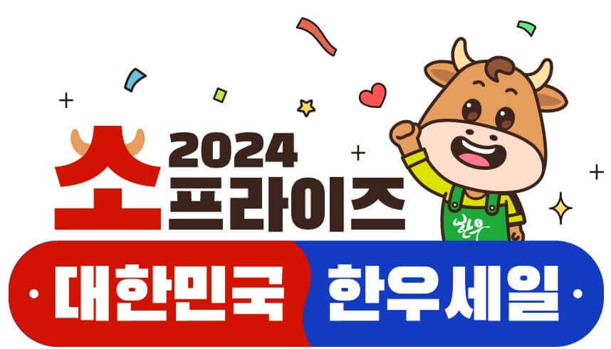 설 명절을 앞두고 정부에서 소비자들의 경제적 부담을 줄이고, 한우 농가를 지원하기 위해 할인 행사를 진행합니다. 이른바 "소(牛) 프라이즈" 50% 가격으로 한우를 구매하세요!!