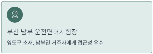 부산 지역 주요 운전면허시험장