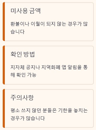 사용 기한은 지자체 공지나 지역화폐 앱 알림을 통해 확인할 수 있으며, 평소 쓰지 않던 분들은 기한을 놓치는 경우가 많습니다.
