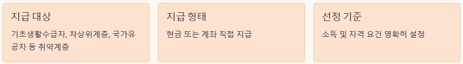 설날 위로금은 주로 기초생활수급자, 차상위계층, 국가유공자 등 일정 요건을 충족한 취약계층을 대상으로 지급됩니다. 복지 성격이 강한 지원으로, 현금이나 계좌 지급 형태가 많습니다. 모든 주민이 대상이 되는 경우는 드물며, 소득이나 자격 기준이 명확하게 설정되어 있습니다.
