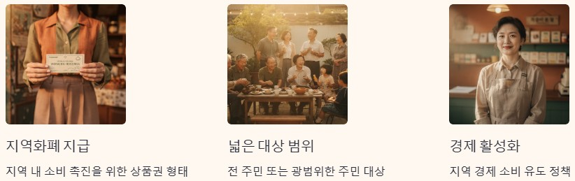 민생안정 지원금은 설 명절을 전후해 지역 소비를 촉진하기 위해 지급되는 경우가 많습니다. 전 주민을 대상으로 지급되거나 대상 범위가 넓은 편이며, 지역화폐나 상품권 형태로 지급되는 사례가 많습니다. 이는 지역 내 소비를 유도하기 위한 정책적 선택입니다.