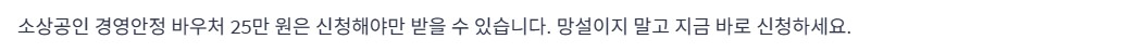소상공인 경영안정 바우처는 예산이 정해진 사업입니다. 조건에 해당해도 신청이 늦으면 지급 대상에서 제외될 수 있습니다. 매번 반복되는 지원이 아니라는 점에서 망설일 이유가 없습니다.