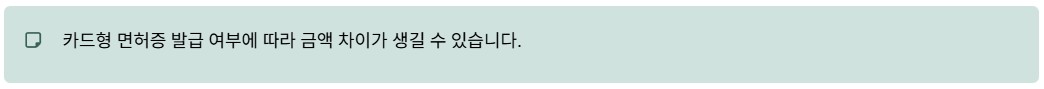 카드형 면허증 발급 여부에 따라 금액 차이가 생길 수 있습니다.