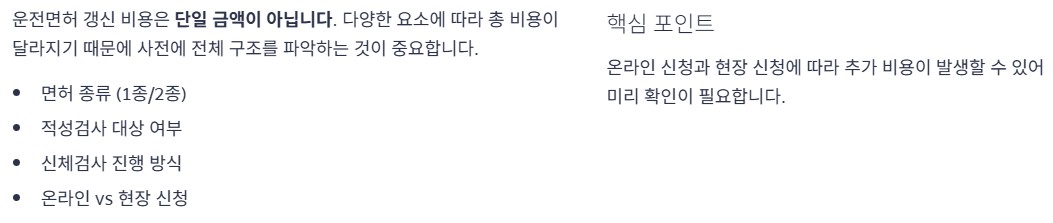 비용을 미리 알고 준비하면 현장에서의 판단 부담이 줄어듭니다. 특히 고령 운전자나 1종 면허 갱신 대상자는 추가 비용 가능성을 염두에 두는 것이 좋습니다.