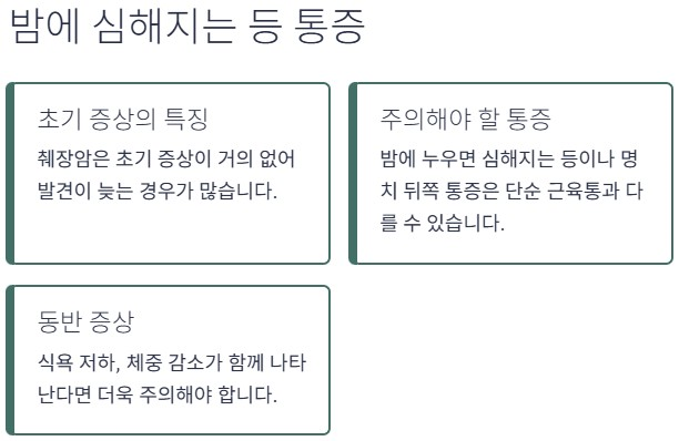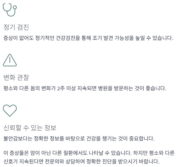 8가지 주요 암의 의심 증상 상세 정보는 아래에서 추가 확인할 수 있습니다.