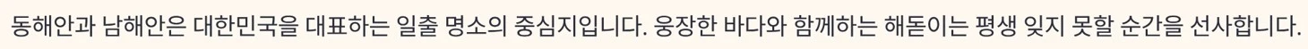 해돋이 시간은 지역별로 몇 분 차이가 나기 때문에 방문 전 다시 한 번 확인하는 것이 중요합니다.