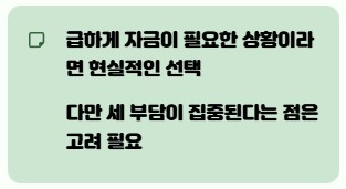 - 당장 목돈이 필요한 경우 적합