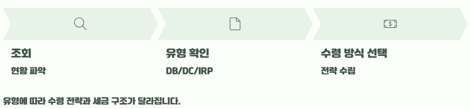 조회는 출발점일 뿐입니다. 유형에 따라 수령 전략과 세금 구조가 달라지기 때문입니다. 퇴직을 앞두고 있다면,