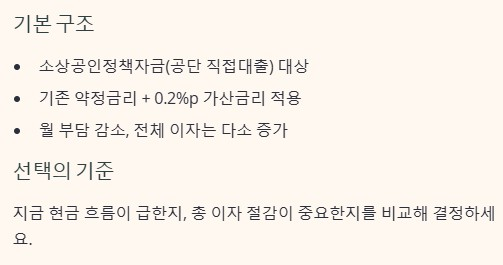 - 매출은 버티고 있는데 월 상환액이 과도하게 부담스러울 때