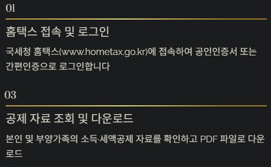 여지없이 돌아온 연말정산 시즌! 직장인이라면 연말정산 간소화 서비스는 필수입니다. 홈택스에서 공제 자료를 조회·제출하는 시스템으로, 누락되는 항목이 없도록 잘 체크하세요!