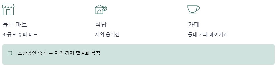 동네 마트, 식당, 카페 등 소상공인 중심으로 사용 가능합니다. 지역 경제 활성화 목적이 반영된 구조입니다.