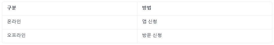 신청은 온라인과 오프라인으로 나뉘며 지급 수단 선택이 중요합니다.