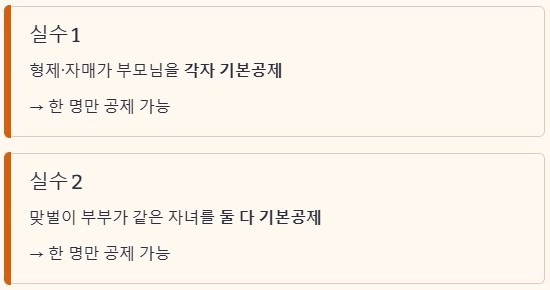 - 부모님을 형제·자매가 각자 기본공제