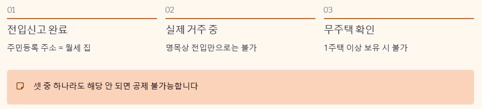 - 전입신고 + 실제 거주 + 주민등록 주소가 월세 집과 일치해야 공제 가능.