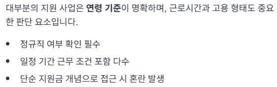 대부분의 정부보조금 청년 일자리 지원 사업은 연령 기준이 명확합니다. 또한 근로시간과 고용 형태가 중요한 판단 요소로 작용합니다. 정규직 여부나 일정 기간 근무 조건이 포함되는 경우가 많아 단순 지원금 개념으로 접근하면 혼란이 생길 수 있습니다.