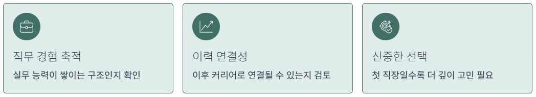 이 제도를 활용할 때는 당장의 취업 여부보다 경력의 흐름을 함께 보는 것이 중요합니다. 직무 경험이 쌓이는 구조인지, 이후 이력으로 연결될 수 있는지 살펴보는 것이 도움이 됩니다. 특히 첫 직장을 고민하는 단계라면 더 신중한 접근이 필요합니다.