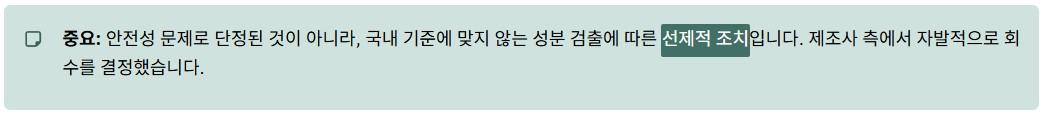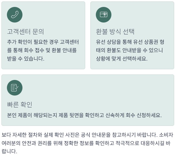 중요한 점은 안전성 문제로 단정된 것이 아니라, 국내 기준에 맞지 않는 성분 검출에 따른 선제적 조치라는 부분입니다. 이로 인해 제조사 측에서 자발적으로 회수를 결정했습니다.