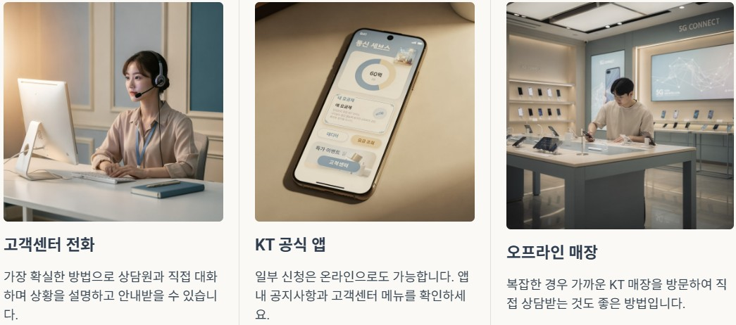 KT 위약금 면제는 자동 처리 방식이 아니라, 고객 확인 후 적용되는 구조입니다. 기본적인 신청 흐름은 다음과 같이 이해하시면 됩니다.